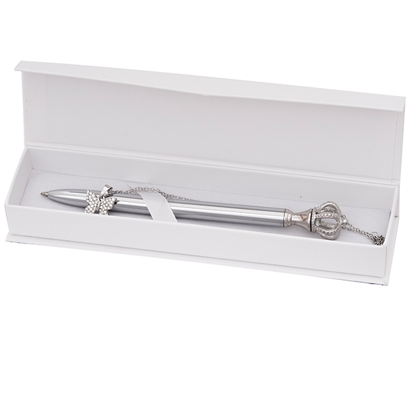 • Тънка метална химикалка с корона на върха и колие с пеперуда