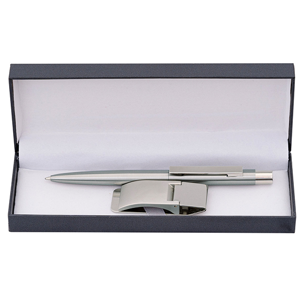 • Комплект метална щипка за пари и химикалка с хромирани елементи