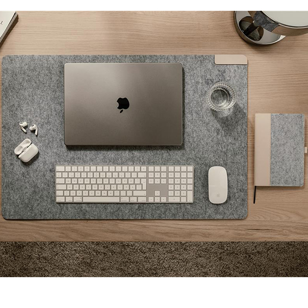 Просторна подложка за бюро, пригодена за съвременния офис. Проектиранa с елегантна, чиста естетика, използвайки GRS рециклиран филц с меланж ефект. Точките против плъзгане на гърба гарантират стабилност, като гарантират, че подложката остава стабилна на позиция. Сертифициран от GRS (глобален рециклиран стандарт)