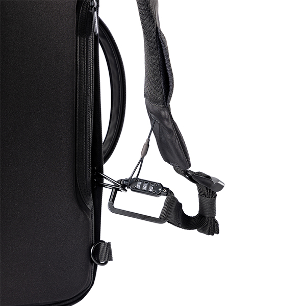 Пазете вещите си в безопасност и направете пътуването си по-стилно с новия Bobby Bizz 2.0. Готова за всеки бизнес повод, можете да превърнете тази раница в куфарче за секунди, само като поставите презрамките в задния джоб. За да предпази вас и вашите вещи в безопасност, емблематичният дизайн на Bobby против кражба няма преден достъп, скрити ципове и скрит джоб, защитен с RFID. Подобрен е с устойчив на срязване материал и вградена метална рамка. Подобреният EVA заден панел осигурява допълнителен комфорт. Можете също така сигурно да заключите своя Bobby Bizz 2.0 към всеки фиксиран обект благодарение на своето заключване с трицифрен код. Във вътрешността на раницата има подплатени отделения за 16-инчов лаптоп, таблет до 12,9-инчов и всичко останало нужно за работата ви.
