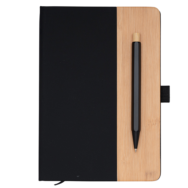 Бележник А5 от еко кожа и бамбук с черна химикалка