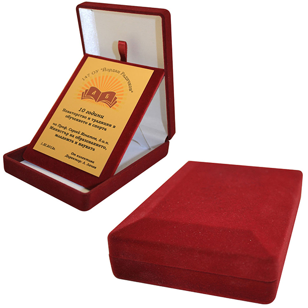 Плакет в плюшена кутия 9 x 12,5 x 3,3 см