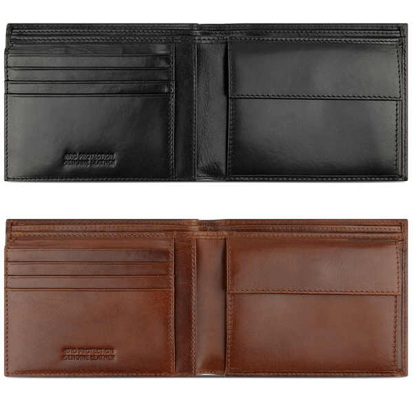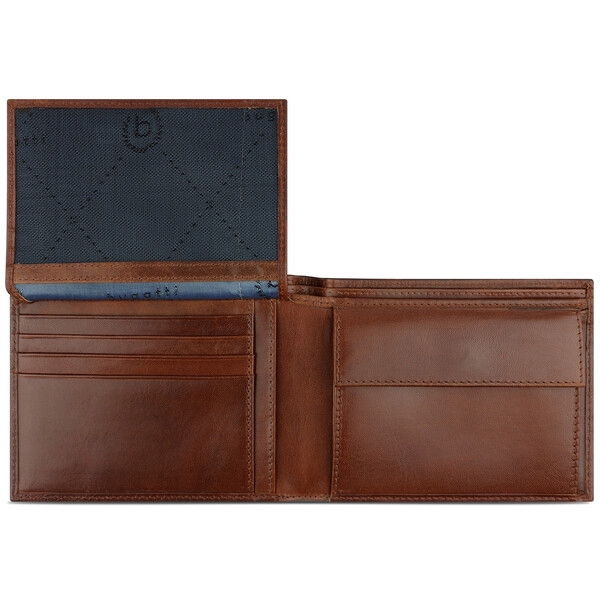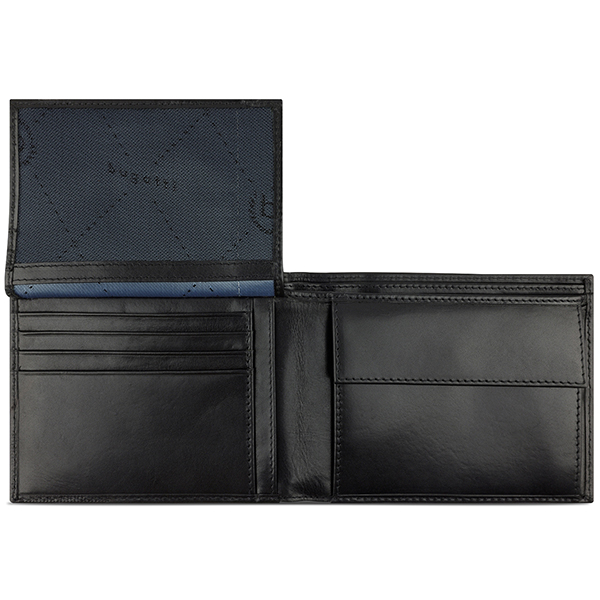 Мъжки портфейл от телешка кожа в класически формат. Представяме ви още една новост от колекцията Nobile от работилницата на ексклузивната марка Bugatti. Портфейлът Bugatti Nobile с капак впечатлява от пръв поглед с декоративен елемент под формата на дизайнерски ъгъл и логото на bugatti, щамповано в кожата. Nobile Wallet With Flap предлага две отделения за хартиени банкноти, отделение за монети, мрежесто отделение за снимки и осем слота за карти и документи. Интегрираната RFID защита гарантира сигурността на чувствителните данни на вашите документи и кредитни карти.