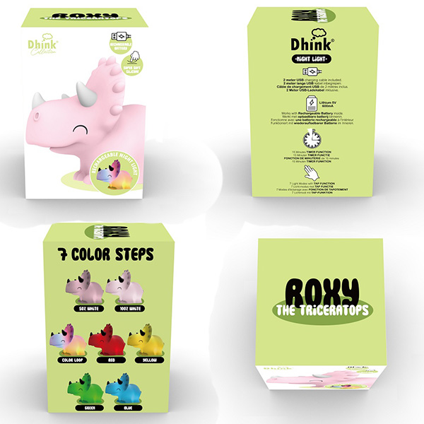 • Акумулаторна нощна лампа Dhink® - Triceratops, розова