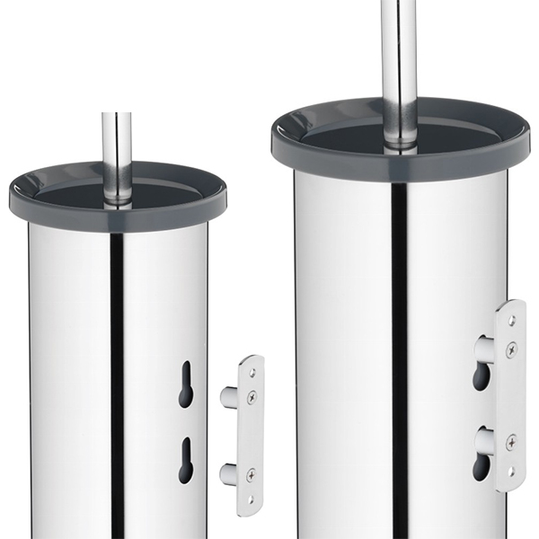 Четката за тоалетна Alor се предлага в различни варианти, за да покрие различните изисквания на клиента. Този вариант е висок, затворен модел с капак от неръждаема стомана за стенен монтаж. Семплият и стабилен вид е визуално впечатляващ. Този модел се предлага и като стоящ модел и като по-нисък, отворен вариант. Тази четка за тоалетна има следните предимства: Окачването и откачането на контейнера от стенната скоба е детска игра. Това означава, че можете лесно да почистите частите, ако е необходимо, и след това лесно да ги сглобите отново. Полезна форма на вътрешния контейнер с широк ръб: Това означава, че четката винаги се плъзга прецизно в контейнера и след това стои изправена. Пластмасовия контейнер също може лесно да се извади за почистване по всяко време. Вътрешният контейнер е изработен от ABS пластмаса и е изключително устойчив на почистващи препарати. Скобата за стена и монтажните елементи са включени в комплекта.