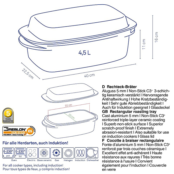 - Материал: лят алуминий, незалепващо 3-слойно покритие