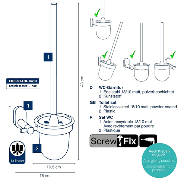 KELA Четка за тоалетна за стенен монтаж “Alessio“