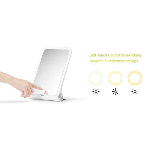 Сияйна светлина: Насладете се на безупречно нанасяне на грим. Огледалото на EKO може да се похвали с LED светлина с цял ореол, възпроизвеждайки яснотата и топлината на естествената слънчева светлина. Иновативен L-образен дизайн: Преминете отвъд конвенционалното с нашето L-образно сгъваемо огледало за грим. Уникалният му дизайн предлага гъвкавост в ъглите, осигурявайки оптимално оглеждане и компактно съхранение. Изключително лекo: Със своя изключително лек и тънък профил, огледалото за грим е изключително удобно както за вкъщи, така и при пътуване и се превръща в основен спътник за всяка дама. Интуитивно управление с докосване: Само с едно докосване LED огледалото за грим предлага три настройки на цвета на светлината, отговарящи на различни нужди от осветление за безупречни резултати при гримиране. Презареждаща се батерия с USB кабел: Снабдено с литиева батерия с голям капацитет, оглeдалото може да работи до 15 дни при ежедневна употреба, което го прави най-доброто огледало за грим с осветление за пътуване. Компактно и готово за пътуване: Сгъваемият дизайн на огледалото за пътуване позволява да се прибира плътно в чанти или куфари, гарантирайки, че винаги имате идеалното си отражение с Вас. Адаптивно накланяне: Намерете без усилие идеалния за Вас ъгъл. Доверете на издръжливостта на огледалото с над 10 000 теста на сгъване. Стойката служи и като защитен капак по време на пътуване Гаранцията на EKO за качество: Доверете се на превъзходството на серията EKO iMira, където авангарден дизайн се среща с практичност за всички Ваши нужди.