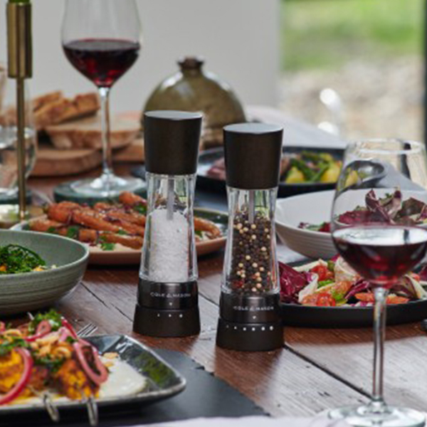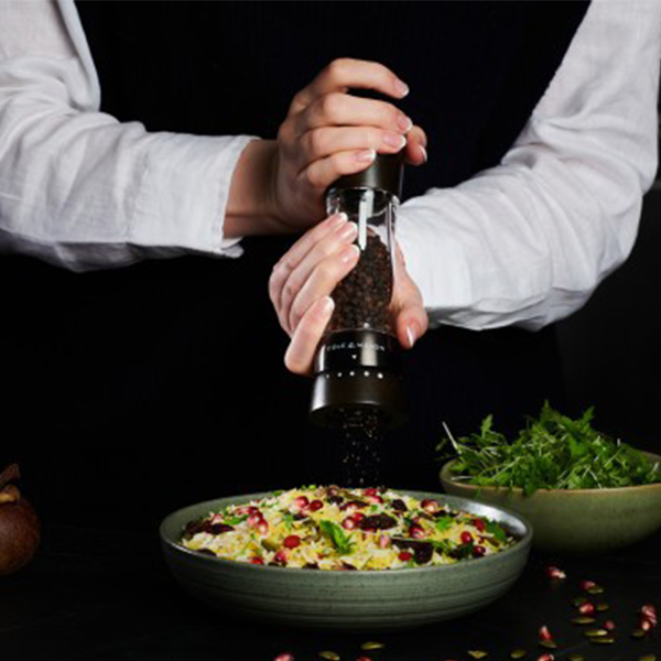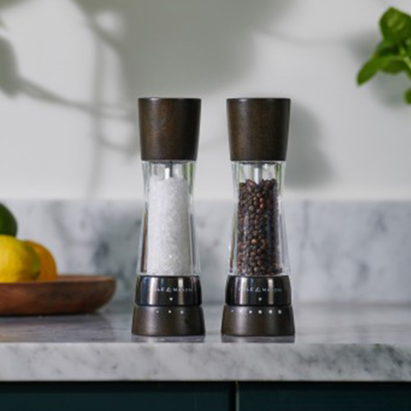 Мелниците Cole & Mason Derwent са перфектният баланс между стилно съвременни и класическо елегантни. Изработени от кристално чист акрил и висококачествена букова дървесина, те са красиво допълнение към всеки дом. Акрилното тяло гарантира, че винаги можете да видите колко са пълни мелниците. Като част от серията Cole & Mason Gourmet Precision те Ви осигуряват увереността да подобрите вкуса на всяко ястие чрез подправки, както би направил професионалист. Функцията Grind Select има предварително избрани настройки, които са изпробвани и тествани, за да гарантират, че винаги получавате най-доброто от Вашите мелници и най-доброто от Вашите ястия. Мелничката за пипер има 6 настройки на смилане, докато мелничката за сол има 3, вариращи от фино до едро. И двете мелници се предлагат с висококачествени цели зърна черен пипер от Виетнам и едра морска сол от Белгия, така че можете да започнете да ги използвате от момента, в който ги получите. Когато се наложи да напълните, просто издърпайте дървения капак. Широкото гърло на акрилното тяло прави пълненето лесно и без бъркотия. Напълнете с любимите си цели зърна черен пипер и едра сол, поставете капака и продължете да се наслаждавате на експертно подправени ястия.