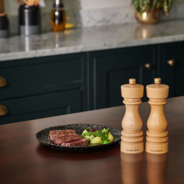 Мелничките LONDON на COLE & MASON едновременно почитат историята и гледат към бъдещето с класически, но съвременен дизайн. Те са стилно допълнение както към традиционните, така и към модерните кухни. Лесно регулирайте едрината на смилане от фино към едро, като завъртите копчето в горната част на мелницата. Изработени са от висококачествена букова дървесина с метални акценти и се предлагат в 5 различни цвята. Мелничките се предлагат празни и комплектите са опаковани в първокласни подаръчни кутии. Почиствайте с микрофибърна кърпа, за да Ви служат максимално дълго. Механизмите за смилане (добре заточена антикорозионна керамика за мелничката за сол, патентован Precision+ механизъм от въглеродна стомана мелничката за пипер) Ви позволяват да подправяте с увереност, знаейки, че ще постигнете високо качество всеки път.