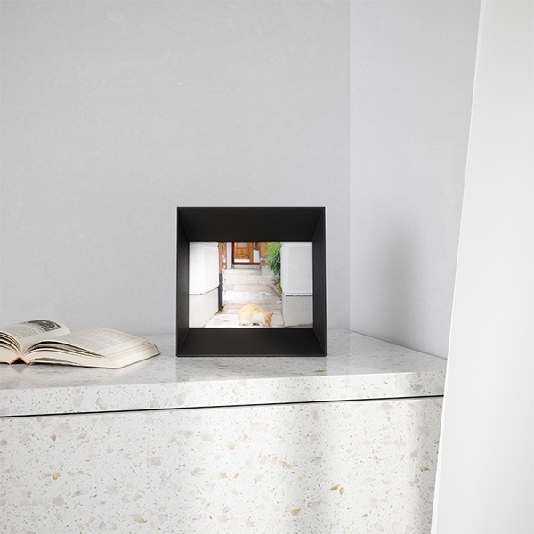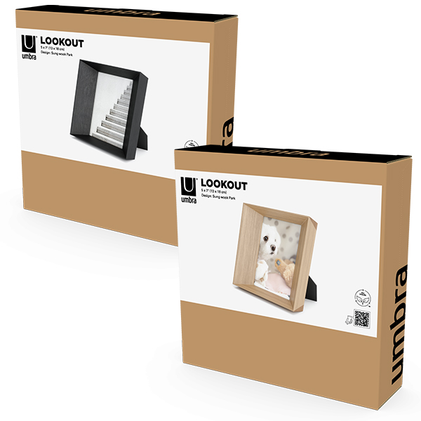 LOOKOUT е уникална рамка за снимки, изработена от масивно дърво. Може да е стояща или монтирана на стена. LOOKOUT се предлага в два размера ( 10х15 или 13х18) и в два цвята - черен и натурално дърво. Външната рамка на LOOKOUT се състои от перфектен квадрат, което означава, че можете да използвате няколко рамки една до друга като колаж, подобен на решетка.