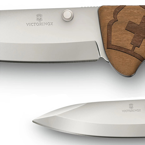 Перфектният сгъваем нож за ежедневни приключения, включващ подвижен щифт за палеца. Швейцарско ножче с 4 функции, чирени от орех.