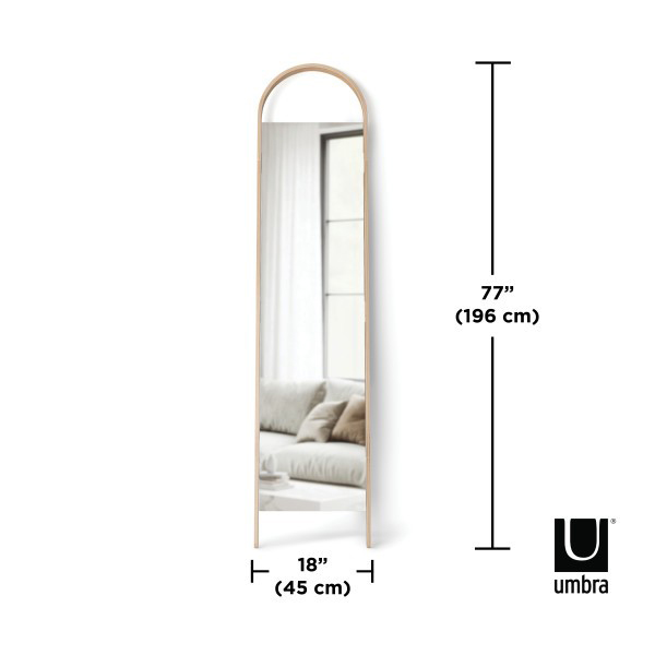 Огледалото BELLWOOD на UMBRA e с извита дървена рамка, добавяща уникален и естествен щрих. Освен, че може да се огледате в цял ръст, то създава отражение и дълбочина и донася допълнително светлина в почти всяко пространство.