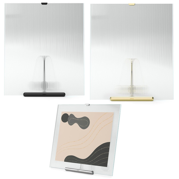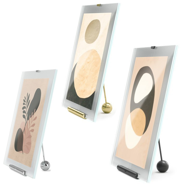 Представяме ви рамката за картина Umbra Flute, стилно допълнение към декорацията във вашия дом. Със своя оригинален дизайн във формата на статив, тази рамка ще показва ценните ви спомени. Оребрената ѝ стъклена текстура добавя елегантна нотка. Може да сложите снимки както в пейзажна, така и в портретна ориентация. Предлага се в три цвята ( хром, черен и месинг) и три размера (10x15;13x18 и 20x25см) .