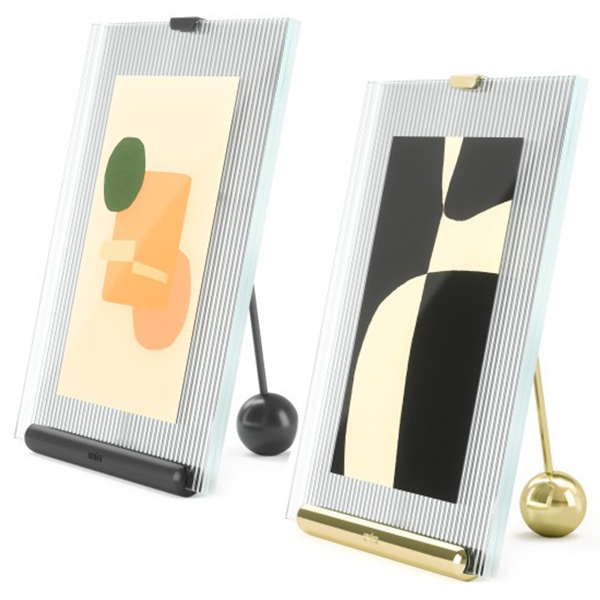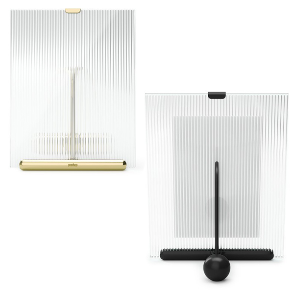 Представяме ви рамката за картина Umbra Flute, стилно допълнение към декорацията във вашия дом. Със своя оригинален дизайн във формата на статив, тази рамка ще показва ценните ви спомени. Оребрената ѝ стъклена текстура добавя елегантна нотка. Може да сложите снимки както в пейзажна, така и в портретна ориентация. Предлага се в три цвята ( хром, черен и месинг) и три размера (10x15;13x18 и 20x25см) .