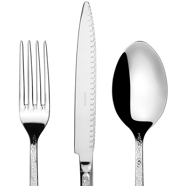 Всички прибори от марката Herdmar са произведени от висококачествена неръждаема стомана, съгласно най-съвременните изисквания за производство на прибори и под строг контрол на качеството. При правилна употреба и грижлива поддръжка, Вашите прибори Herdmar ще останат блестящи, полирани и в добро състояние за дълго време. Указания за почистване и съхранение: Ръчно почистване: След употреба, измийте приборите, колкото е възможно по-скоро, за да избегнете продължителен контакт с остатъците от храна. Използвайте гореща вода, неутрален и мек почистващ препарат и гладка гъба. След измиване, подсушете незабавно с мека кърпа. Почистване в съдомиялна машина: Използвайте само висококачествени препарати. Измийте приборите, колкото е възможно по-скоро след тяхната употреба, като не зареждате прекалено много кошницата за прибори в съдомиялната машина. Поставяйте ножовете винаги с остриетата нагоре и отделно от другите прибори. Лъжиците и вилиците трябва да се поставят в кошницата с дръжките надолу. Никога не слагайте в кошницата прибори от неръждаема стомана, заедно с други метали, позлатени или посребрени прибори за хранене. Препоръчително е - след измиване - веднага да извадите ножовете от съдомиялната машина и да ги подсушите със суха и мека кърпа. Не съхранявайте приборите за хранене на влажни места, където върху приборите могат да се образуват петна. Неправилното почистване също може да доведе до поява на петна по приборите. Петната могат да бъдат почистени от приборите, като ги потопите в разтвор от топла вода и лимонена киселина за 15 минути (1 супена лъжица лимонена киселина на 1 литър вода.)