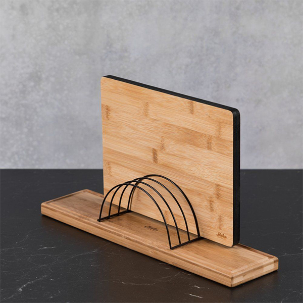 Удобна поставка за съхранение на дъски за рязане в изправено положение. Почистване на повърхността с влажна кърпа.