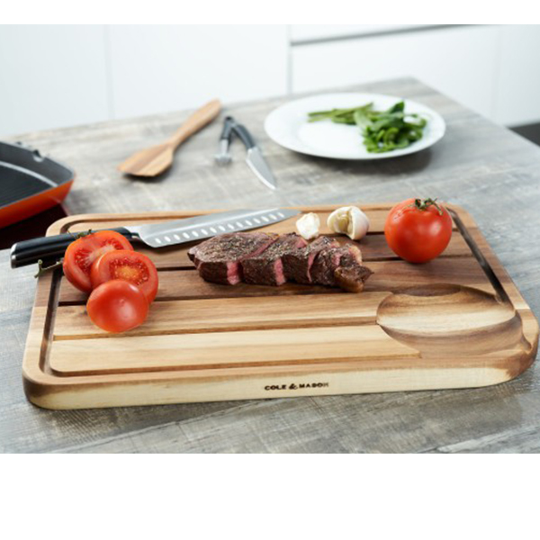 Дъската за карвинг от акация е идеалната дъска за обработване на месо и домашни птици. Изработена от масивна акациева дървесина и с дълбоки дренажни канали, които водят до събирателен кладенец и канал за изливане в ъгъла. Дъската за карвинг Cole & Mason ще спечели своето място във всяка кухня.