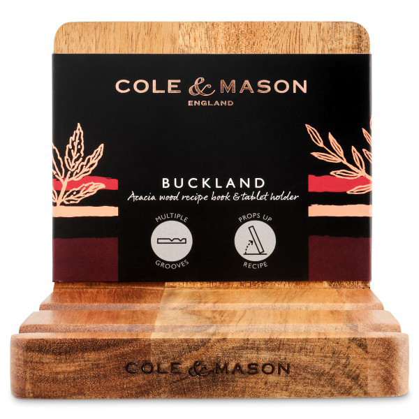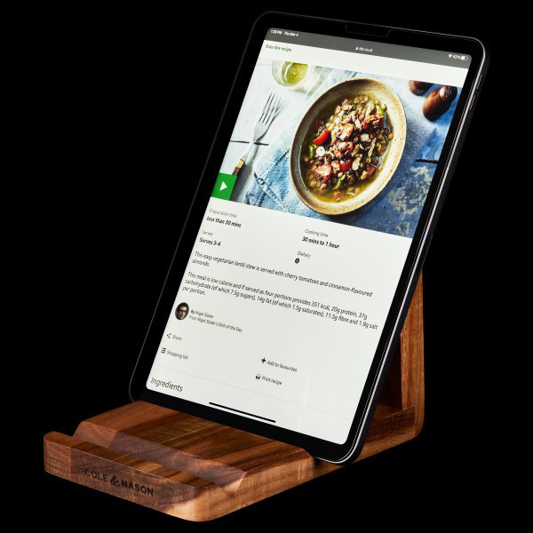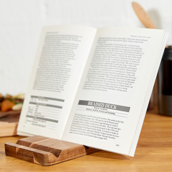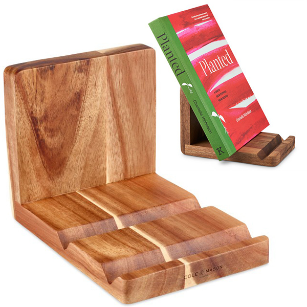 Когато готвите от книга, таблет или карта с рецепти, тази красива поставка от акациево дърво прави изключително лесно да следвате любимите си рецепти, като същевременно ги държите далеч от лепкави пръсти и разхвърляни повърхности. Размери на продукта: 180 мм. дълбочина x 130 мм. височина x 130 мм. ширина.