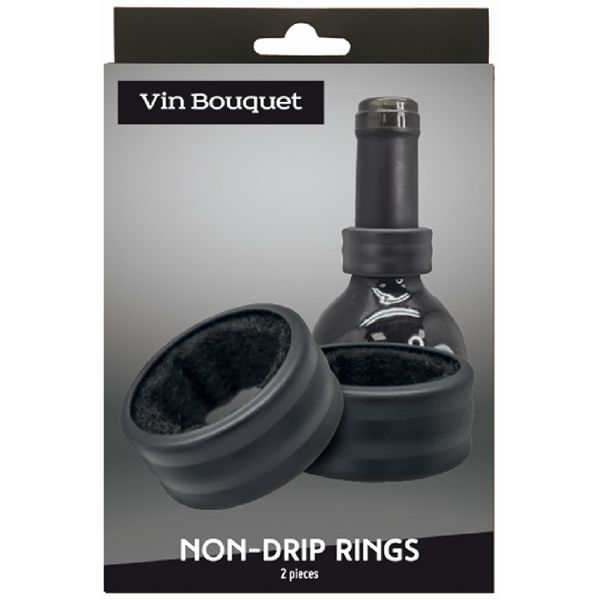 Всички домакини знаят, колко трудно се почистват петната от вино от покривката на масата. На този факт се базира цяла индустрия за рекламиране на перилни препарати. А неприятният момент може много лесно да бъде избегнат, без да лишавате небцето си от изтънчената напитка - просто поставете специалния пръстен на гърлото на бутилката, след като я отворите. Изработеният от плюш филтър ще улавя капките вино, които неминуемо ще се плъзват по бутилката, когато наливате. Този комплект включва два пръстена, което Ви позволява винаги да имате един под ръка или да споделите опита си с друг винен ентусиаст.