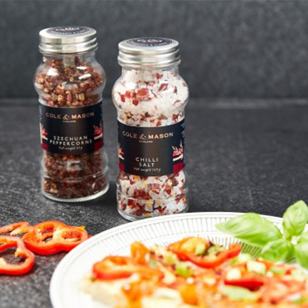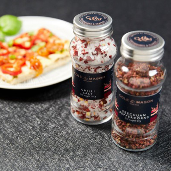 Добавете ароматен привкус към храната си с този комплект от 2 стъклени буркана, пълни с ароматна сол и черен пипер. Морската сол е комбинирана с лют червен пипер, придавайки прекрасен лют и пикантен вкус. Сечуанският пипер има пикантен аромат, който се съчетава чудесно с люти чушки и други подправки. Дръжте ги под ръка, за да напълните всеки комплект мелници за сол и пипер Cole & Mason. Опаковани в луксозна подаръчна кутия, те са идеалното допълнение при закупуване на всеки комплект мелници за сол и пипер на Cole & Mason.