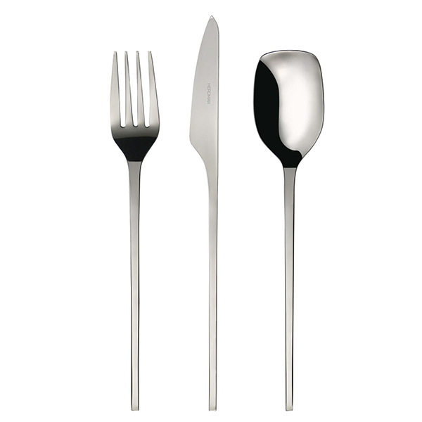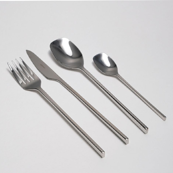 Подписан от португалския дизайнерски колектив RAMA OBJECTS (Marta Gonçalves и Helder Cação), моделът Verso съчетава изтънченост и естетика, разкривайки уникален и автентичен дизайн, обещаващ да бъде един от акцентите на всяка маса. Указания за почистване и съхранение: Ръчно почистване: След употреба, измийте приборите, колкото е възможно по-скоро, за да избегнете продължителен контакт с остатъците от храна. Използвайте гореща вода, неутрален и мек почистващ препарат и гладка гъба. След измиване, подсушете незабавно с мека кърпа. Почистване в съдомиялна машина: Използвайте само висококачествени препарати. Измийте приборите, колкото е възможно по-скоро след тяхната употреба, като не зареждате прекалено много кошницата за прибори в съдомиялната машина. Поставяйте ножовете винаги с остриетата нагоре и отделно от другите прибори. Лъжиците и вилиците трябва да се поставят в кошницата с дръжките надолу. Никога не слагайте в кошницата прибори от неръждаема стомана, заедно с други метали, позлатени или посребрени прибори за хранене. Препоръчително е - след измиване - веднага да извадите ножовете от съдомиялната машина и да ги подсушите със суха и мека кърпа. Не съхранявайте приборите за хранене на влажни места, където върху приборите могат да се образуват петна. Неправилното почистване също може да доведе до поява на петна по приборите. Петната могат да бъдат почистени от приборите, като ги потопите в разтвор от топла вода и лимонена киселина за 15 минути (1 супена лъжица лимонена киселина на 1 литър вода.)