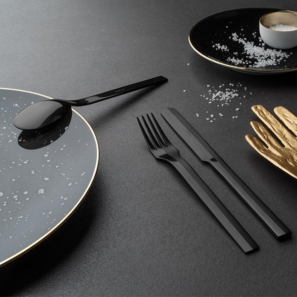Технологията на декоративното PVD покритие (PVD - Physical vapor deposition), се състои от тънък слой керамично покритие с висока адхезия, с контролирана дебелина между 0,5 и 1,5 микрона, депозирано от силно йонизирана плазма във високо-вакуумна камера. Може да се прилага върху всички модели прибори с матов или лъскав акцент. PVD покритието е тънко само няколко микрона, но е твърдо и устойчив на корозия. Молекулите му така се свързват с тези на метала, че веднага след нанасянето му е много трудно (почти невъзможно) да бъде отстранено. Трябва да се избягва контакт с абразивни повърхности.  - Всички прибори, покрити с PVD, е препоръчително да бъдат почиствани в съдомиялна машина и никога с абразивни или агресивни препарати, както и груби гъби. Анти-алергични: PVD покритието осигурява защита от директен човешки контакт със субстрата, предотвратяване на алергични реакции от различни компоненти, като никел например; PVD покритието е биосъвместимо - значително намалява бактериалната адхезия и пролиферация;  - PVD покритието е устойчиво на износване и корозия, удължава живота на приборите; Нанасянето на покритието не замърсява околната среда – то е екологично покритие;  HERDMAR не гарантира замяна на прибори с PVD покритие, освен ако не се установи дефект, причинен при производство или от суровина.