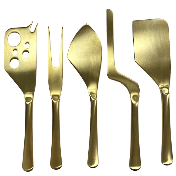 От меко бри до твърд чедър, всяко сирене заслужава своя момент да блесне и този комплект е тук, за да го направи. Комплектът за сирена HERDMAR MUH е изработен със страст и предназначен за ценителите на сирена. MUH e идеалният подарък за любителите на сирена и всички, които ценят изкуството на изисканата кухня. Комплектът се предлага в луксозна черна кутия. Позлатени прибори с 24 карата злато: Приборите за хранене със златно покритие имат покритие с дебелина от 3 или 4 микрона 24 карата злато; Всички прибори със златно покритие е препоръчително да бъдат почиствани в съдомиялна машина и НИКОГА с абразивни или агресивни препарати, както и груби и драскащи гъби. Покритието е биосъвместимо, тествано и одобрено за безопасност при контакт с храна; Пазете приборите със златно покритие и ги поддържайте с внимание и грижа, за да запазите добрия им външен вид. Плътността на цвета на златното покритие може леко да се промени, според начина на използване и от околната среда, където се съхраняват. Приборите трябва винаги да бъдат добре почистени и подсушени, за да се предотврати образуването на петна. HERDMAR не гарантира замяна на позлатени прибори - 24 карата злато, освен ако не се установи дефект, причинен при производство или от суровина.