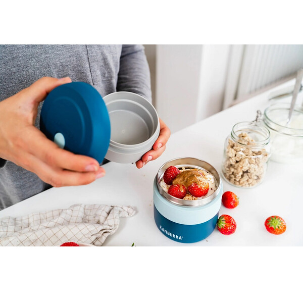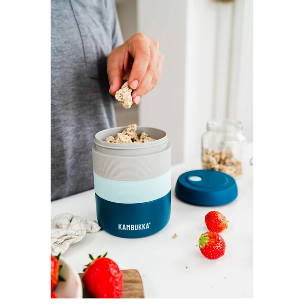 В този контейнер (допълнителна приставка) за закуски Kambukka можете да съхранявате вашата хрупкава закуска, обяд или вечеря отделно от вашите по-овлажняващи лакомства (като кисело мляко или супа), така че храната ви да остане хубава, суха и хрупкава.