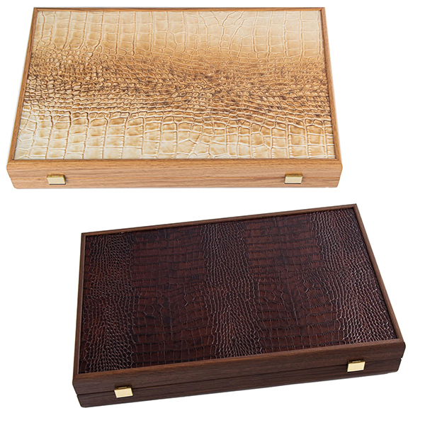 Кожената табла Crocodile tote има уникален външен вид и е изработена с вечна естетика. Отличаваща се със страхотен стил и издръжлива конструкция, тази табла демонстрира високо ниво на изработка. Комбинацията от твърда дървена рамка с най-добрата външна повърхност от италианска кожа е създадена специално за най-взискателните играчи на табла. Инкрустираното игрално поле е перфектно сглобено и изработено със специална немска екокожа в бежово с карамелени и кафяви капии. Тази табла е създадена да доставя удоволствие през целия живот. Таблата е ръчно изработена чрез техника "Интарзия", наричана също "Инкрустация", при която различните видове фурнир се режат на фигури от майстори артисти. Впоследствие фигурите се подреждат и влагат една в друга. По този начин се получава игрално поле с невероятна красота. *Забележка! Тъй като при направата на този продукт са използвани висококачествени естествени материали, всяка една табла е уникална и различна от другите. Снимката е илюстративна, като показва цветове и разположение на фурнирите. Продуктът, който ще получите може да се различава от снимката по фладер (шарка на дървесината) и нюанс на цвета.