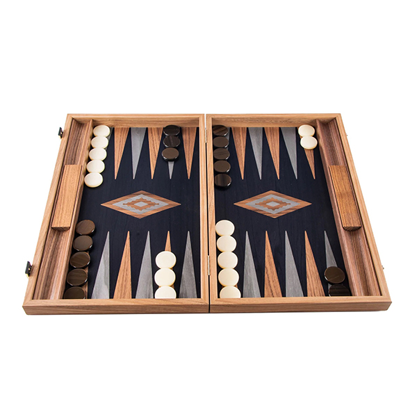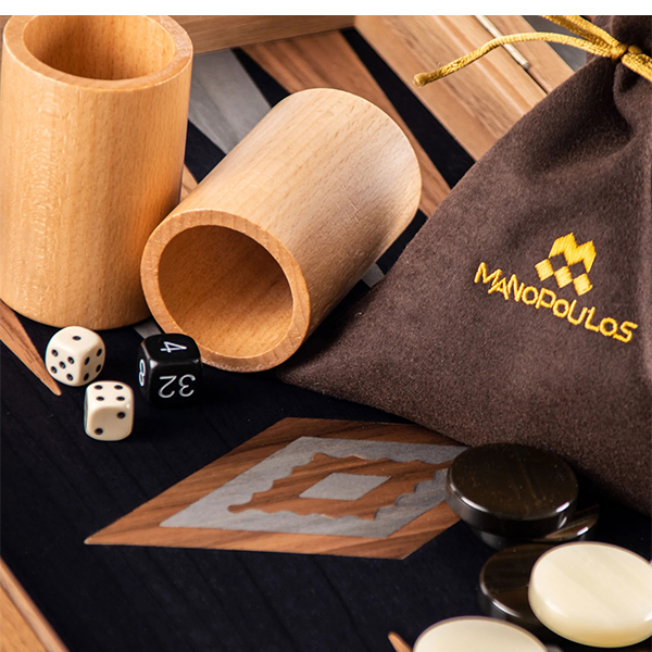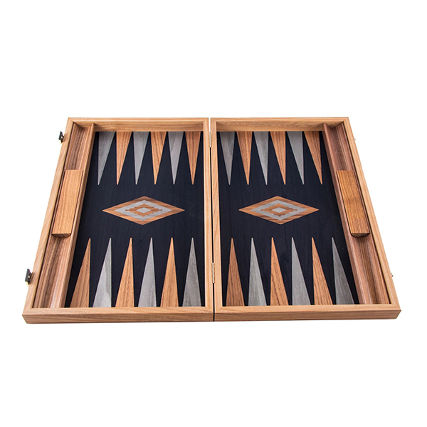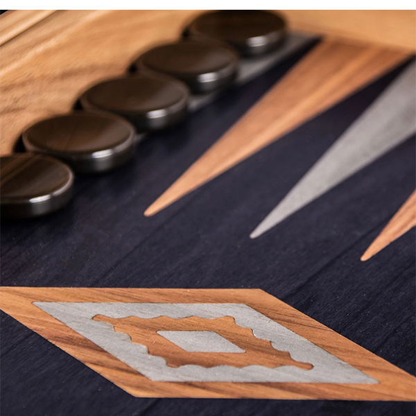 Черен дъб с орехови и сиви капии.  Таблата е ръчно изработена чрез техника "Интарзия", наричана също "Инкрустация", при която различните видове фурнир се режат на фигури от майстори артисти. Впоследствие фигурите се подреждат и влагат една в друга. По този начин се получава игрално поле с невероятна красота.