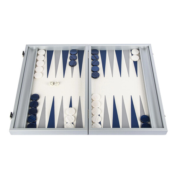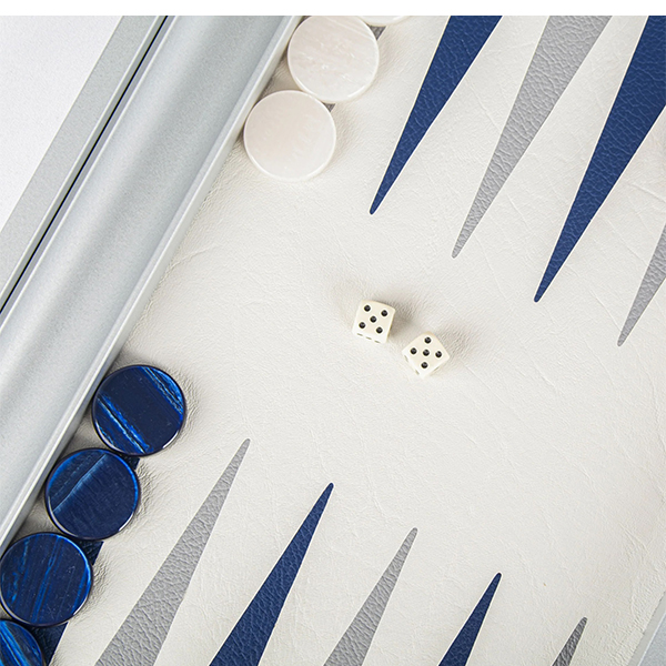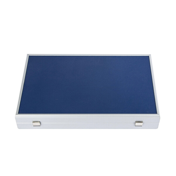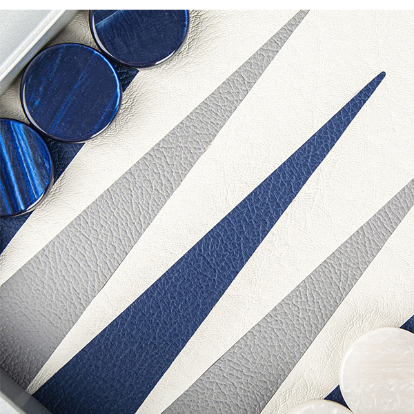 Морскосиня кожена табла. Колекцията Leatherette има изискан, елегантен външен вид, като същевременно запазва всички уникални предимства на висококачествената екокожа, особено що се отнася до намаляване на шума и повишената издръжливост. Таблата е ръчно изработена чрез техника "Интарзия", наричана също "Инкрустация", при която различните видове фурнир се режат на фигури от майстори артисти. Впоследствие фигурите се подреждат и влагат една в друга. По този начин се получава игрално поле с невероятна красота.