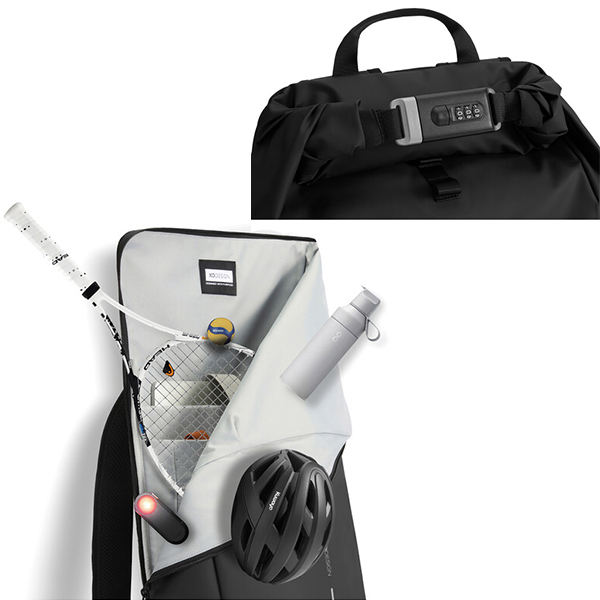 Новата раница Urban против кражба е идеалният спътник при пътуване, осигурявайки сигурност и удобство. Чрез навиване на основното отделение и закрепването му с подсилената кодова ключалка, раницата предлага пълно затваряне, което може да се използва и за заключване на раницата около фиксиран предмет. Скрити джобове на гърба. Раницата е снабдена със страничен джоб за бутилка вода. Вътрешни подплатени отделения се грижат за 16" лаптоп и мрежестите джобове осигуряват организация за вашите основни неща. Изработена с проследим рециклиран полиестер Aware™ и завършена с меко на допир водоустойчиво PU покритие. 11% рециклирано съдържание. Регистриран дизайн®