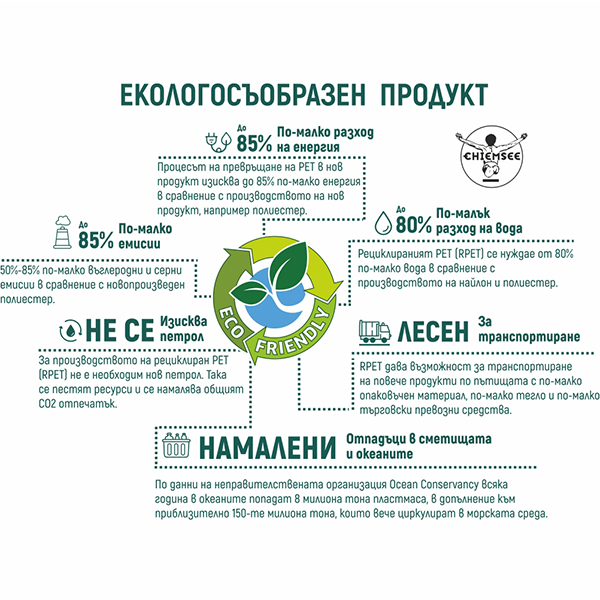 - Материал: рециклиран PET (RPET) 600D/рециклиран полиестер