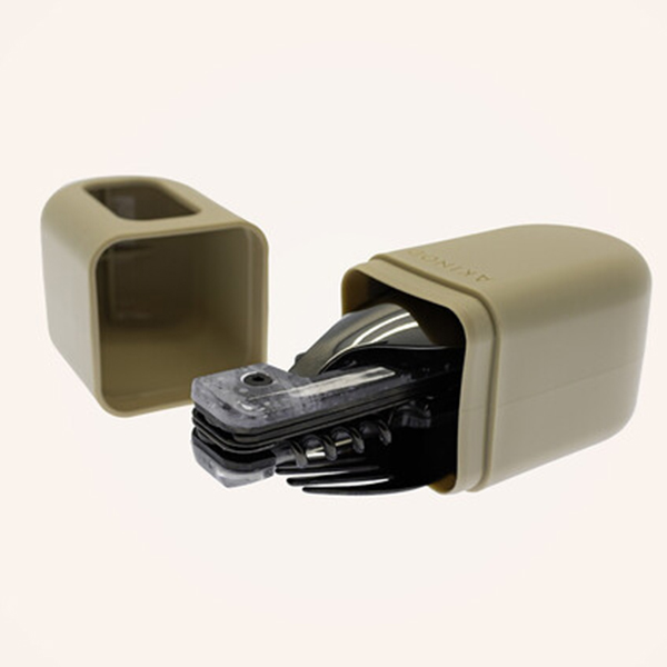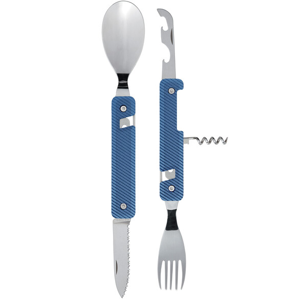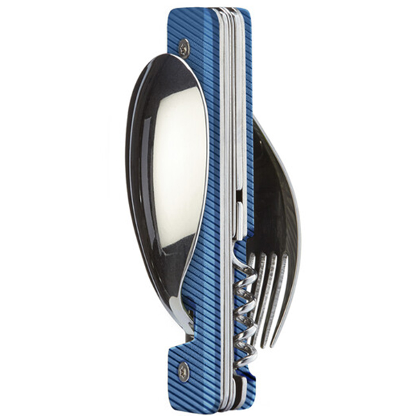 - Състои се от голяма лъжица, вилица с 5 зъба, нож с микронабраздено острие, тирбушон с 4 спирали, отварачка за консерви и отварачка за бутилки
