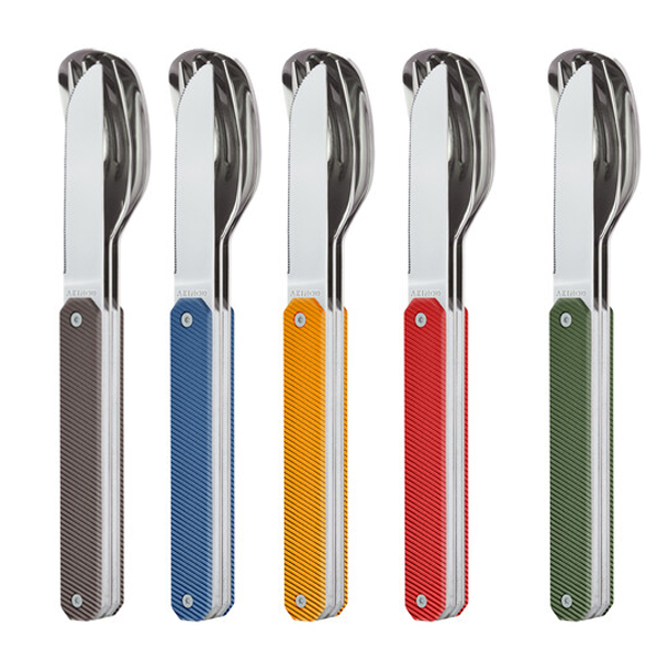 - Състои се от голяма лъжица, вилица с 4 зъба и нож с микронабраздено острие