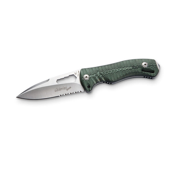 Професионален спасителен нож с дръжка от Micarta®, фиксирано и заострено острие, "комбо" (полуназъбено) и сатиниран финиш. Вграден стъклотрошач в задната част на дръжката. Няколко отвора за шнур на дръжката, където може да се закрепи шнур или въже. Шестоъгълен магнитен държач за стандартна 1/4'' (6,35 мм) вложка върху дръжката. Профил за гайка (мм.7-8-10-13) в острието. Препоръчителни аксесоари: Професионална кания от Cordura® " TOP.EGG " (без вложки и удължител) или " TOP.EGG_&_BITS " (стандартна "TOP.EGG" + специален допълнителен джоб за прикрепване към основната обвивка с вложки и удължител).