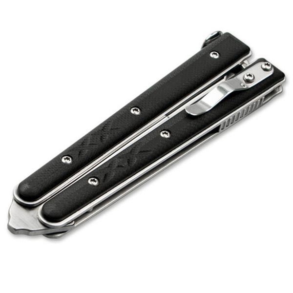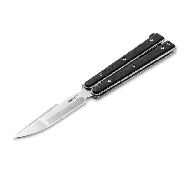 Компактният Boker Plus Balisong Tactical Small е оборудван със структурирани чирени на дръжката от G10. Острието е изработено от стомана 440C и има семесено заточване. Когато е затворен, той е напълно затворен от двете части на дръжките. За отваряне е достатъчен замах от китката. С клипс.