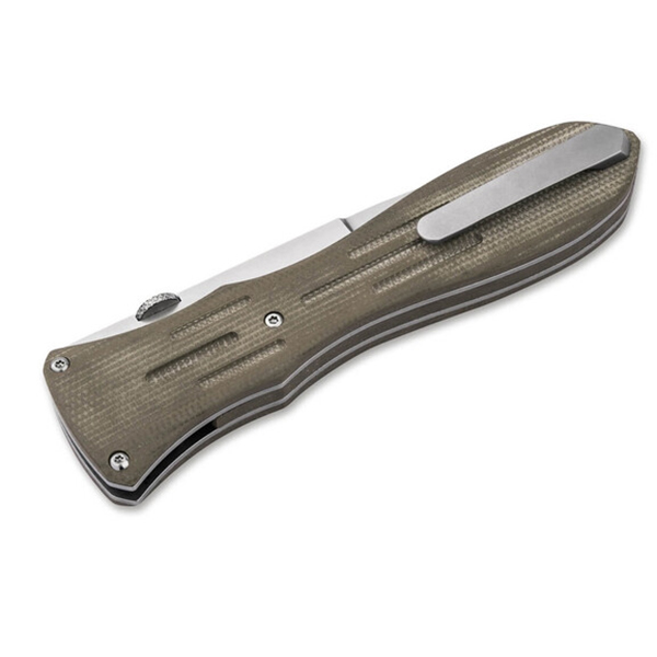 Формата на тактическия джобен нож е моделирана по легендарните тактически ножове на Рекс Апългейт и отговаря на тяхното ДНК с всяко рязане. Симетрията е една от определящите му характеристики, която е отразена както в едноострото кинжално острие от VG-10, така и в ергономичната дръжка, изработена от светлокафява микарта. Декоративни елементи като атрактивното рикасо на гърба на острието, дискретното стоунуош покритие на острието и издължените вдлъбнатини в чирените на дръжката са доказателство за тактически добре обмислена концепция, която е реализирана в Atropos за EDC употреба. Благодарение на сачмените лагери и подвижния щифт за палеца, ножът може да се отваря плавно и интуитивно и да се заключва надеждно чрез здравия лайнерлок. Boker Plus Atropos - съдбата може да бъде толкова елегантна. Доставя се с клипс и висококачествено найлоново калъфче.