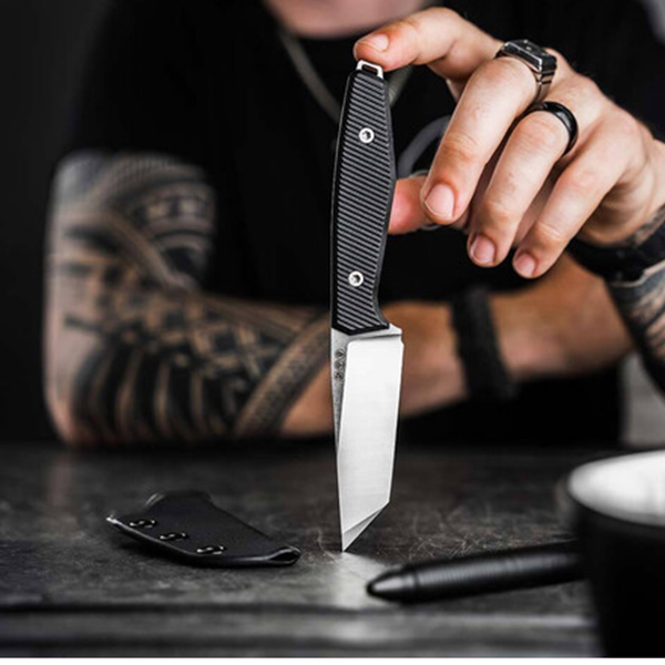 Изключително атрактивен EDC нож с фиксирано острие с добре обмислена концепция и подбрани материали - достатъчно причини да разтуптят сърцата на много любители на ножовете. И най-хубавото е, че портфейлът ви изобщо не трябва да се тревожи. С AK1 Amercian Tanto, разработен в сътрудничество с младия ножар Алекс Кремер и Daily Customs, Boker напредва в атрактивен ценови сегмент за ръчно изработени ножове с фиксирано острие, произведени в Германия. Универсалният, компактен ежедневен нож с пълен танг може да бъде перфектно адаптиран към собствените нужди. Роден през 1993 г. във Фулда, Германия, Алекс Кремер започва да прави първите си ножове като 18-годишен ученик. И до днес многобройните му обиколки през привидно безкрайните простори на Скандинавия служат като източник на вдъхновение. Проектираният от него AK1 е оборудван с американско острие Tanto, изработено от N690, което е идеално за прецизни срязвания, например за отваряне на опаковки. Чирените с ергономична форма са изработени от олекотен G10. Те могат да бъдат демонтирани без усилие с приложения ключ Torx и могат да бъдат заменени с различни алтернативни чирени, разработени и разпространени от Daily Customs. Доставя се с персонализиран калъф от Kydex с щипка. Ръчно изработени в манифактурата Boker в Солинген.