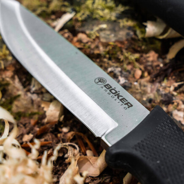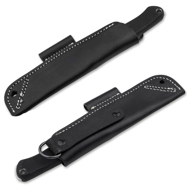 Широкото острие с капковиден връх е с оптимална дължина от 10,3 см и среден до висок скос за максимална стабилност. Тази стабилност е допълнително гарантирана от безкомпромисния избор на стомана Böhler N690. Острието е непрекъснато и стърчи на няколко милиметра от края на дръжката. Това гарантира максимална стабилност. За материал на дръжката е избран TPE - термопластичен еластомер. Материалът изцяло обгръща танга и има класическа карировка за оптимален захват. TPE е устойчив, еластичен, не се хлъзга и има ниска топлопроводимост. Поради това ножът лежи сигурно в ръката при всякакви метеорологични и работни условия и не извлича силата от пръстите при мокри и студени условия. Вдлъбнатият отвор за каишка е допълнително поставен с втулка от неръждаема стомана. В комплекта е включена кожена кания с дълбоко и здраво прилягане на ножа. По този начин ножът е защитен по най-добрия възможен начин както от загуба, така и от повреда при носене. Подвижният висящ механизъм позволява носене във висока позиция на колана или в ниска позиция под колана на туристическата раница.