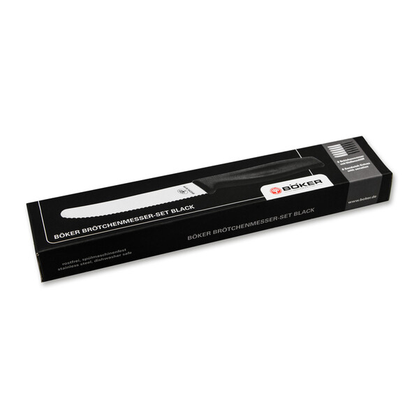 Универсалният нож за сандвичи Boker е оборудван с острие от висококачествена неръждаема стомана с остър назъбен ръб. Той е идеален за рязане на плодове и зеленчуци, както и като нож за домати или хляб. Черната синтетична дръжка е с ергономична форма и винаги лежи сигурно в ръката благодарение на грапавата повърхност.