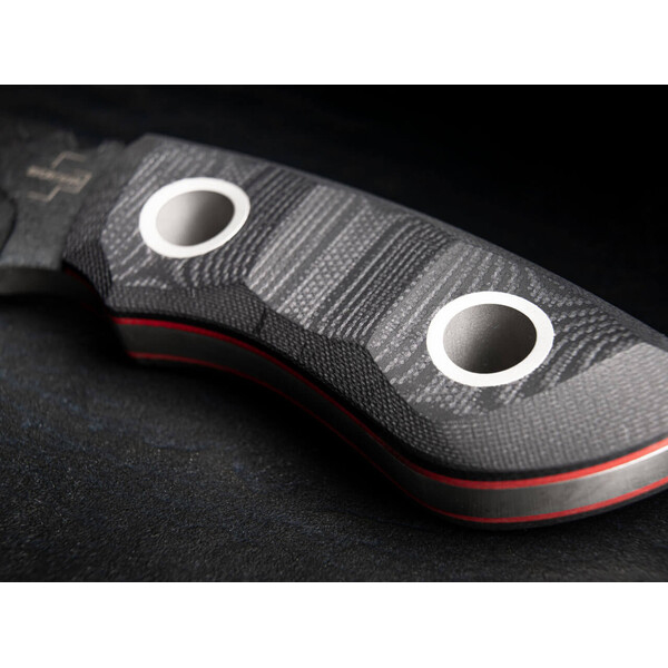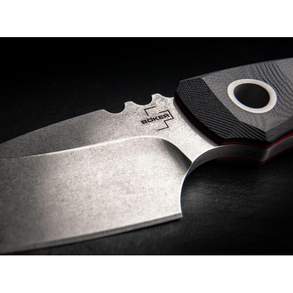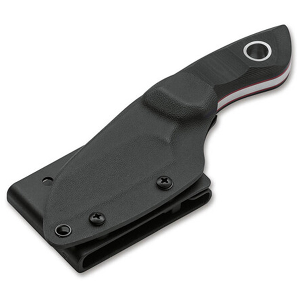 Със своето дебело острие ножът Boker Plus PryMate Pro, проектиран от датския майстор на ножове Йеспер Вокснаес, може да се справи с всяко предизвикателство и е идеален дори за по-големи задачи за рязане. Сравнително компактните размери на ножа подчертават несравнимата здравина на конструкцията с пълен танг. Острието е изработено от стомана D2. Ергономичните чирени на дръжката, фрезовани от микарта, както и дълбоките нарези за палеца предлагат отличен захват, а червеният слой под чирените създава привлекателен визуален контраст с масивния гръб на острието. Шлифовката на острието със стонуош финиш създава балансиран профил на рязане въпреки необичайния размер. Канията от кидекс може да се прикрепи към приложения адаптер за колан за няколко варианта на носене. Характерните кухи нитове имат двойна функция и като отвор за каишка.