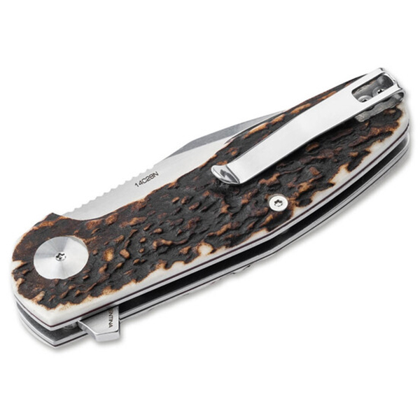 Мисията: да усъвършенства стресиращото ежедневие с малко заслужена почивка. Изискването: характер! Героична задача, която Boker Arbolito Heroína (на испански за героиня) приема безстрашно и като универсално джобно ножче героично хармонизира областите на EDC, природата и лова. Внушителното острие, изработено от стомана 14C28N с устойчив режещ ръб, се отваря плавно и меко с флипер и се заключва на място от непоколебимия и надежден Linerlock. Дръжките, изработени от внимателно подбран еленски рог, добавят традиционен щрих, а разкошната капачка на винта на оста на острието със световноизвестното дърво Бокер се слива хармонично с цялостната картина.