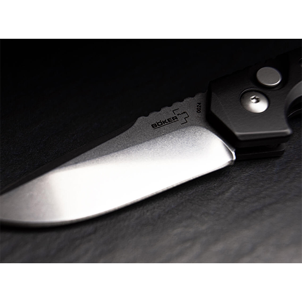 Ножът Boker Plus Thunder Storm Auto, проектиран от Борис Манашеров, е здрав тактически нож. Изразеният чойл го прави много удобен при всяка позиция на хващане. Бързата смяна на позицията при обратен захват или обратното се подпомага от издатините в гръбнака на острието и дръжката. Черните чирени на дръжката са фрезовани от алуминий с намаляващи теглото жлебове. Острието от AUS-8 е с лек стонуош финиш и се отваря автоматично с бутон. С инструмент за чупене на стъкла от волфрамов карбид , отвор за ремък и преместваем клипс носене.