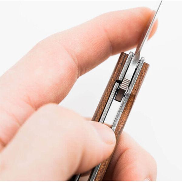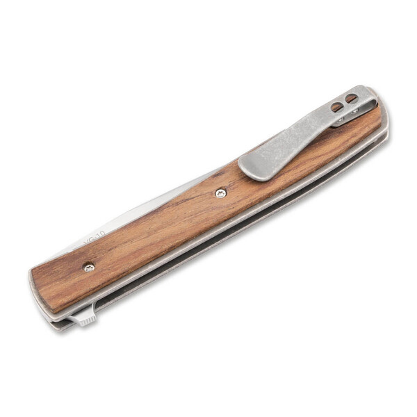 Изключително плоският и много тънък дизайн превръщат Urban Trapper в несравним джобен нож за горния сегмент на пазара. Олекотената дръжка от титан е снабдена с чирени от висококачествено дърво кокоболо, които, от една страна, осигуряват малко по-пълно усещане при захват, а от друга - предлагат специална визуална привлекателност. Декоративното благородно дърво е твърдо и тежко и е лесно за обработка, когато е изсъхнало. Доставя се с подвижен клипс за носене, изработен от титан, и висококачествен найлонов калъф за съхранение.