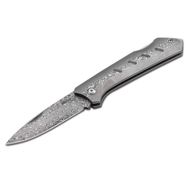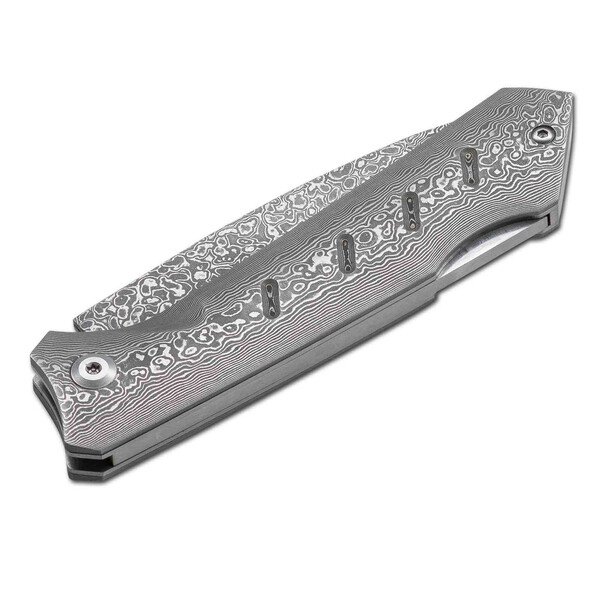 Солидният, но елегантен Damascus Dominator има не само красиво маркирано дамасково острие със 71 слоя, но и чирени на дръжката, изработени от дамаск. Контурът на дръжката също предизвиква изключително хармонична линия на текстурата, която преминава от малки вълни по ръба на чирените в жива кръгла шарка към центъра на дръжката. Backlock механизъм за заключване. Острие с жлеб за нокти.