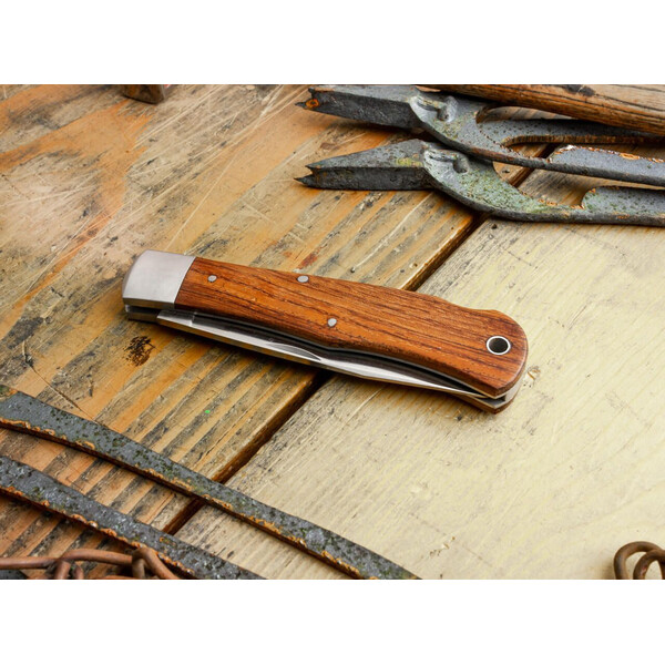 Boker Plus Lockback впечатлява с класическия си външен вид и висока полезност, и със своите прилежно монтирани дървени чирени на дръжката, които се сглобяват с болтчета от полирана неръждаема стомана. Традиционния прорез за нокти позволява удобно отваряне, острието е направено от стомана 440C. Чирените от дърво Bubinga и полираното острие придават на ножа специална позиция във витрината и в ежедневието.
