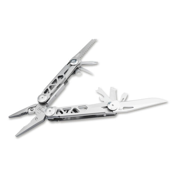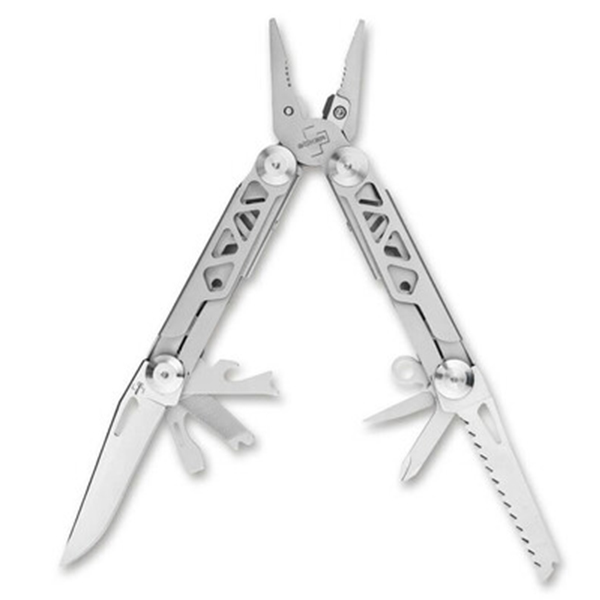 Оборудван с различни практични инструменти, Boker Plus Specialist Pro е универсален многофункционален инструмент с пружинни клещи. Има подсилена сменяема резачка за тел и издържа на високи натоварвания. В допълнение към плоската повърхност за захващане, клещите имат и отвор за захващане на винтове с шестостенна глава, холендърни гайки и тръби. Инструментите, разположени в двете половини на дръжката, се отварят плавно и могат да се използват особено безопасно благодарение на надеждния заключващ механизъм. В допълнение към комбинираните клещи, оборудването на мултитула включва още нож с гладко острие, трион за дърво, отварачка за консерви, отварачка за бутилки, огъвач/заголвач за тел, шило за шиене/пробиване, отвертка Phillips, права отвертка и пила за метал. Тялото на дръжката е изработено от неръждаема стомана и има декоративни отвори. Доставя се с отвор за ремък, клипс и висококачествен полиетиленов кобур за колан.