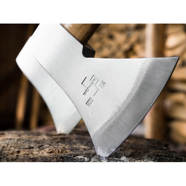 Независимо дали става въпрос за домашното огнище, ловната хижа, градината, поддръжката на горите, скаутския лагер или лагера за бушкрафт, брадвата като един от най-старите инструменти на човечеството все още е незаменима за използване в много дейности. Някои ентусиасти, занимаващи се с дейности на открито, дори отдават предпочитание на брадвата пред ножа. Брадвите Boker Plus Appalachian се отличават с шлайфана глава, изработена от въглеродна стомана 1055 - избор, който осигурява над средното съдържание на въглерод и е стандарт на материала дори за скъпите брадви. Универсално проектираната дебелина на острието е еднакво подходяща както за сечене, така и за цепене. Долният връх (петата) на острието с дължина 10,7 см може да се използва като накрайник за струговане на парчета дърво. Материалът е защитен от ръжда чрез защитен лак. За главите на двете брадви е избрано универсалното тегло от 600 г. За дръжките е използван най-добрата американска дървесина хикори с дълги влакна, която значително превъзхожда европейския ясен по еластичност преди чупене и устойчивост на ударно натоварване. Дръжките са с двойно закрепване - дървен клин и стоманена втулка. Двата модела Appalachian Big и Appalchian Small се различават по дължината на дръжките на брадвата.